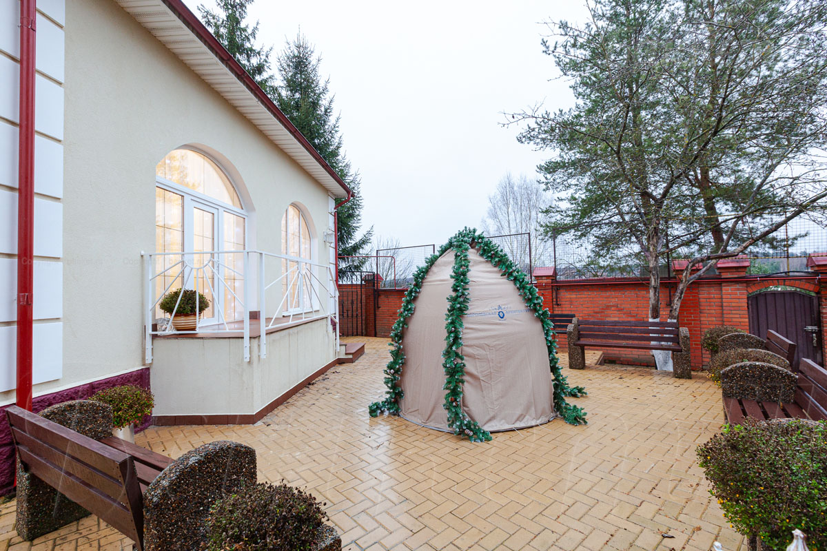 У нас есть 4 дома, для 40 гостей одновременно и красивый банкетный зал